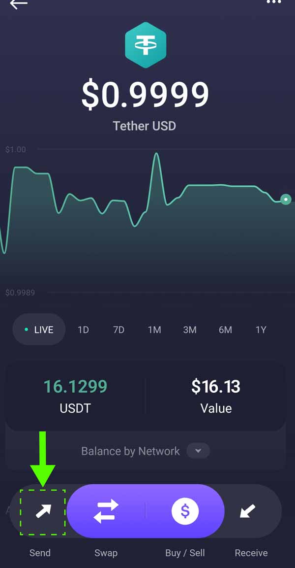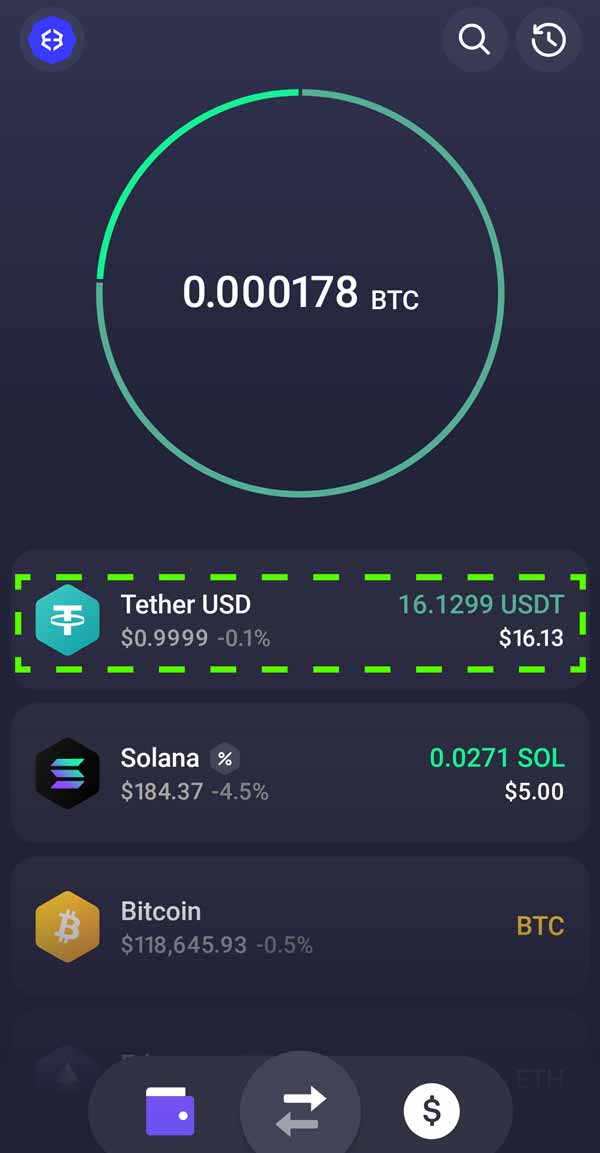 7) Return to your Assets tab in Exodus to see you will now have the balance of your PYUSD converted to Tether! You are ready to move onto the final step of sending your crypto payment