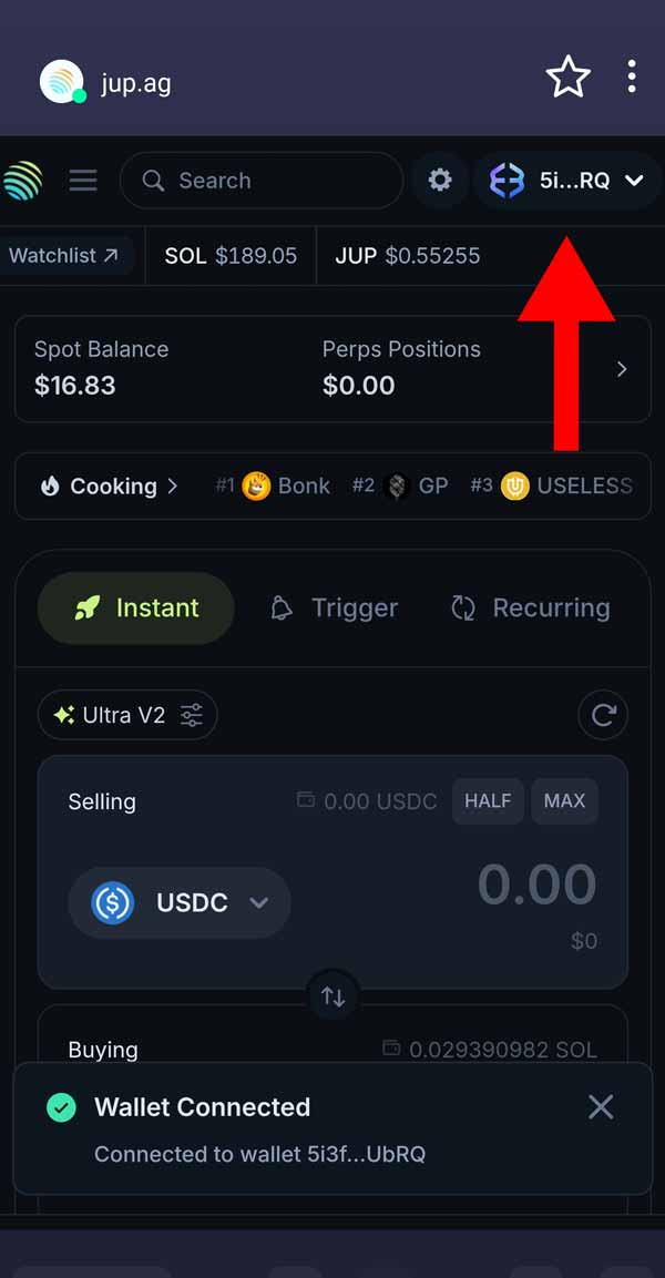 4) Confirm your wallet shows up in top right. If so you are connected and we can swap