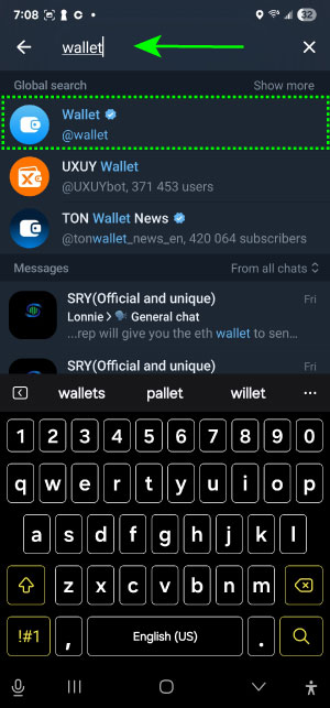 1) Search Wallet in Telegram