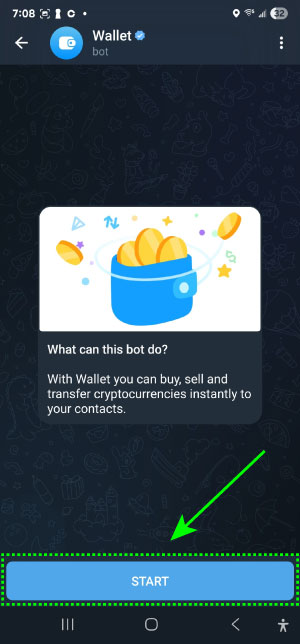 Search wallet in telegram and start service
