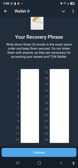 7) Record your backup phrases and store them somewhere save. Do not give these to ANYBODY